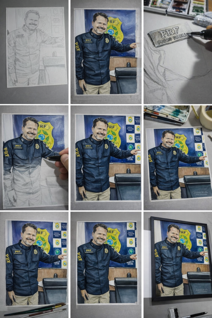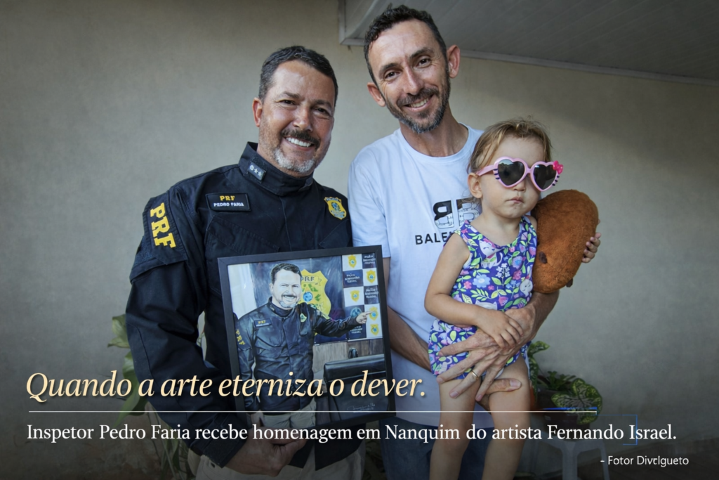 Em um gesto que une arte, reconhecimento institucional e respeito à trajetória pública, o Inspetor da Polícia Rodoviária Federal (PRF), Pedro Faria, foi homenageado pelo artista plástico Fernando Israel com a entrega de uma obra exclusiva executada em Nanquim.